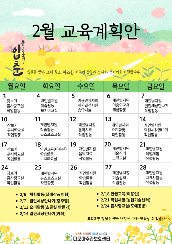 다모아주간보호센터 2025년 2월 교육계획안