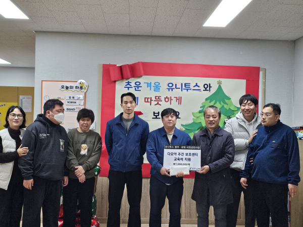 유니투스(주) 충주공장이 12월 29일, 2025년 연말을 맞아 지역 장애인의복지 향상과 따뜻한 연말 분위기 조성을 위해 다모아주간보호센터에 후원금 100만 원을 전달했다.